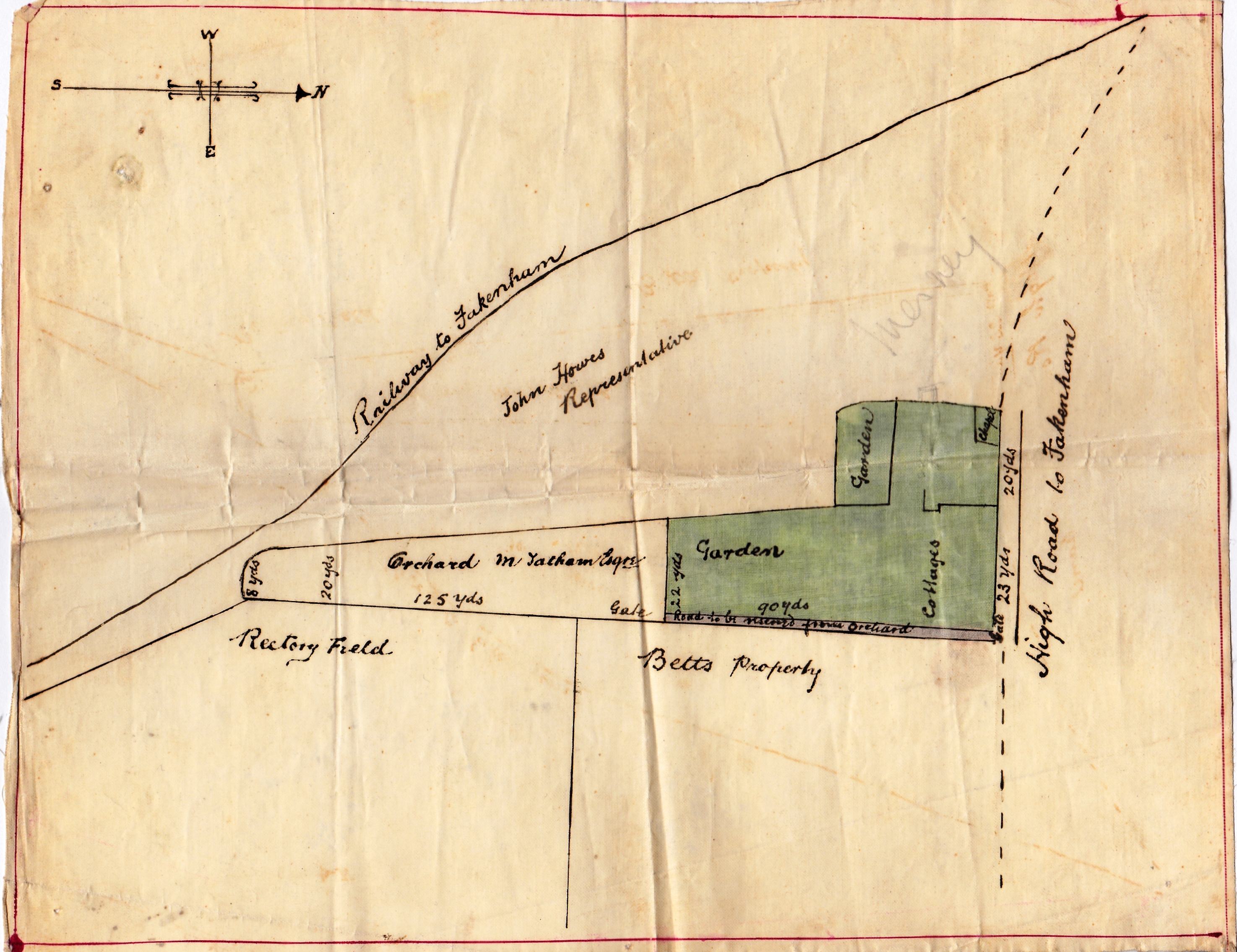 At the Inclosure in 1810, the ninth piece of land, allotted to William Purling describes a plot (247 on the plan below)whereon a “new built messuage or cottage and other buildings stand” This is the same plot and position as the Primitive Methodist Church shown on the 1886 Ordnance Survey Map. Whether this was the same building mentioned on the Sunday return is not possible to say for sure but certainly not without the bounds of possibility. Thomas Christmas Parker returned to Little Snoring to farm 14 acres before going to Rawmarsh in Yorkshire where in the 1871 Census he is described as a "Licensed Primitive Methodist Preacher Fakenham and Wells" and Elizabeth as a "midwife and laundress". Thomas died on “August 6th 1875 at Parkgate in the Parish of Greasborough in the County of York, Shoemaker. Administration granted to William Thomas Parker, Miner of Rawmarsh, the son and only Next of Kin”.