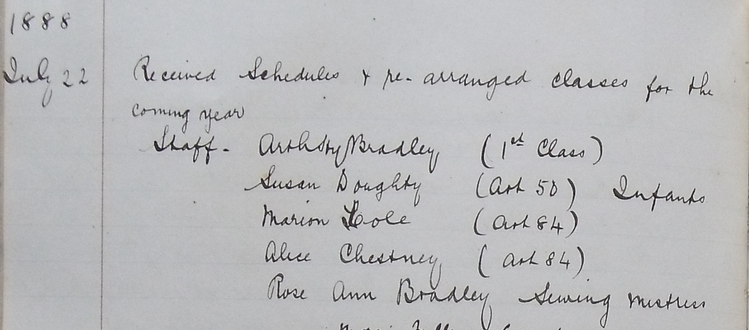 The staff of the school in 1888 are listed in the following image: