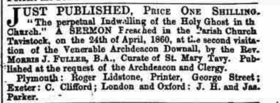 In June 1860 we find notice, possibly for the first time, of a published sermon