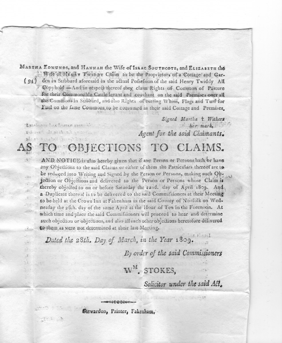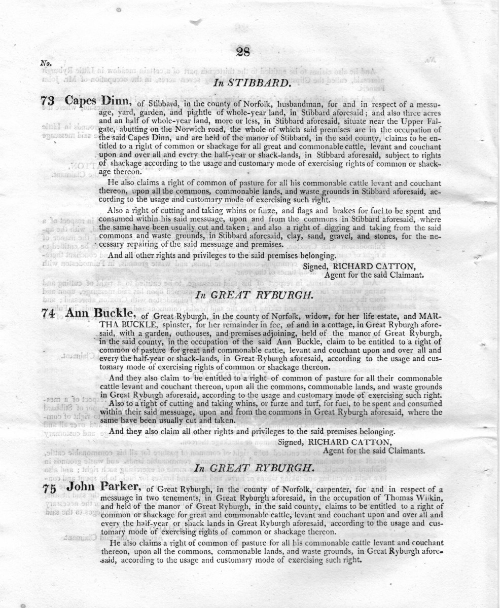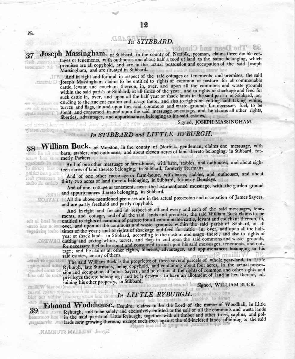 The pages illustrated below are those which concern just the claims made in Little and Great Ryburgh. If any reader requires to see the missing pages for the other villages covered by the Act, please make contact through the site.