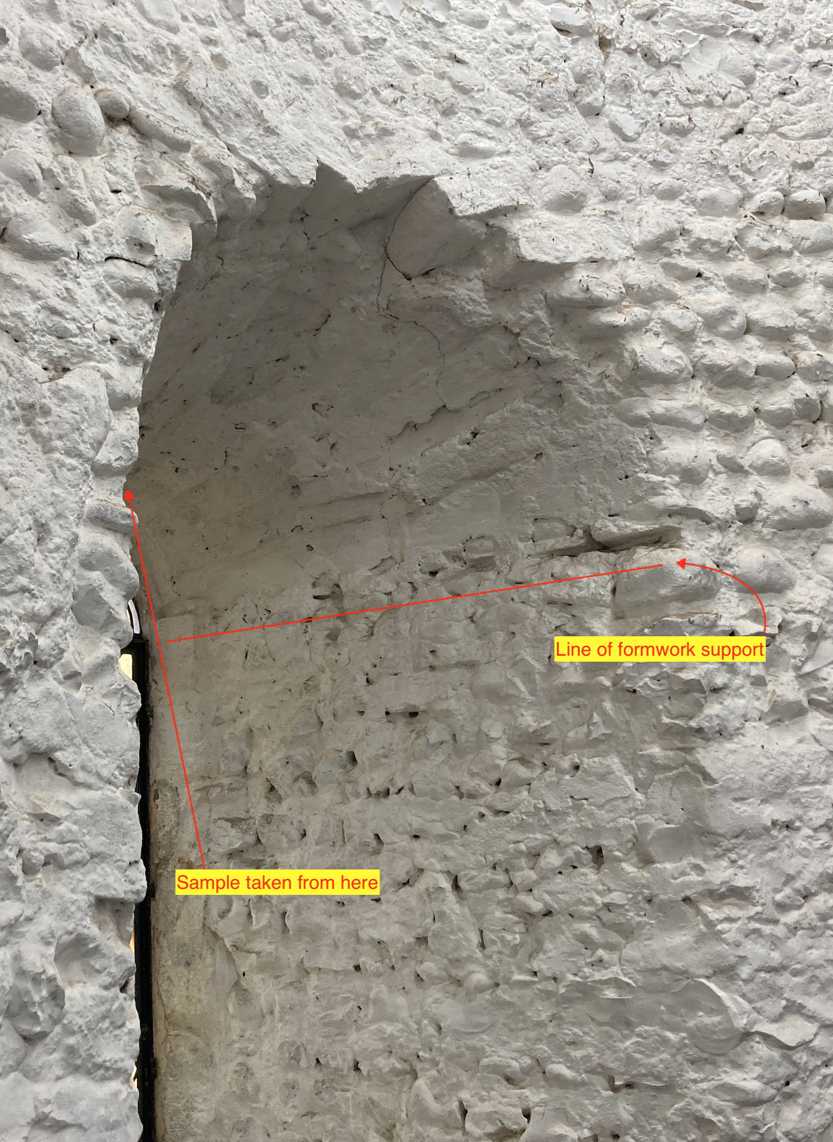 Some people may know that in the ringing chamber in the tower, embedded in the reveals of the window are fragments of timber that, it is believed, once formed the support for the formwork used to build the arch over the window when the tower was first built.