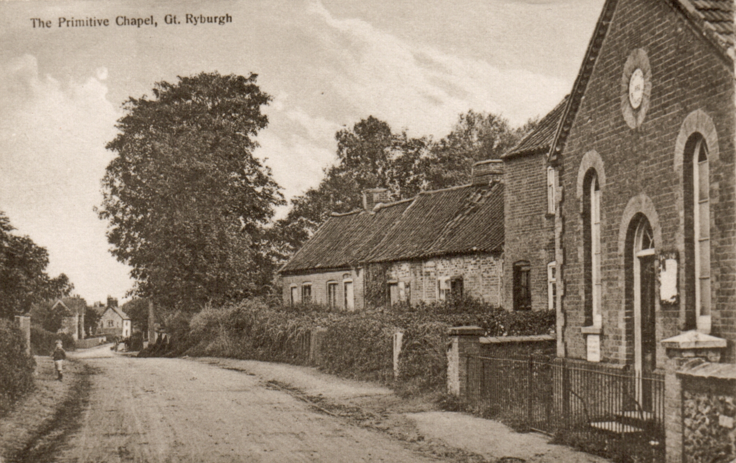The presence of any Methodist Chapel in Great or Little Ryburgh does not receive mention in either Kelly’s or White’s Directories until the editions of the last quarter of the C19th. Harrods Directory in 1877 identifies United Methodist and Primitive Methodist Chapels. Craven's Directory of 1856 however reports that in Great Ryburgh "the Wesleyan and Primitive Methodists each have a chapel here". In Little Ryburgh they have a "Primitive Methodist Chapel"