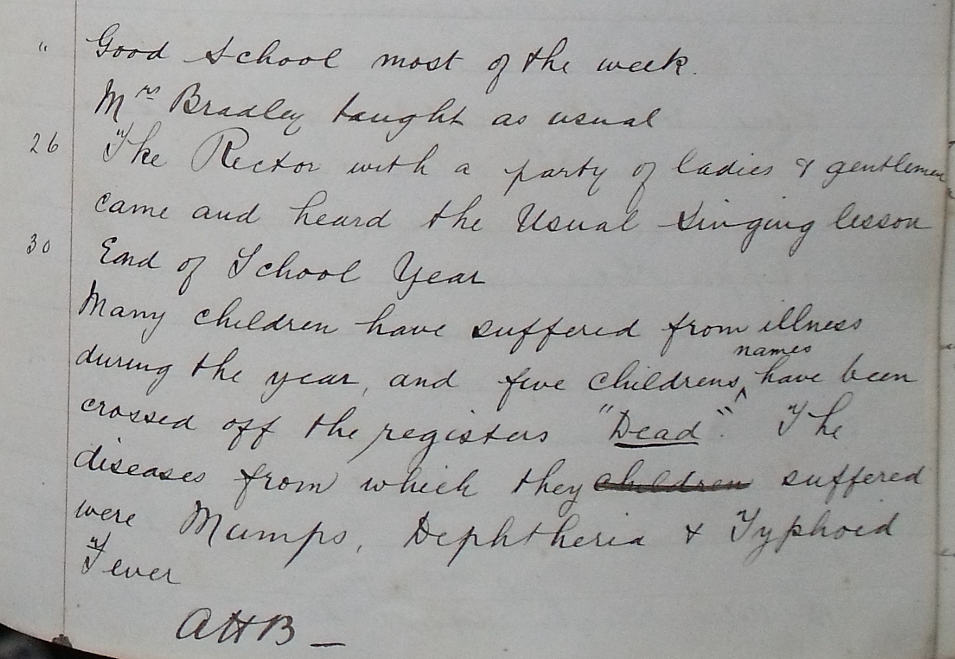 He also presided over the school at a time when illnesses spread quickly in school and not without consequence as seen here at the end of the 1885 school year: