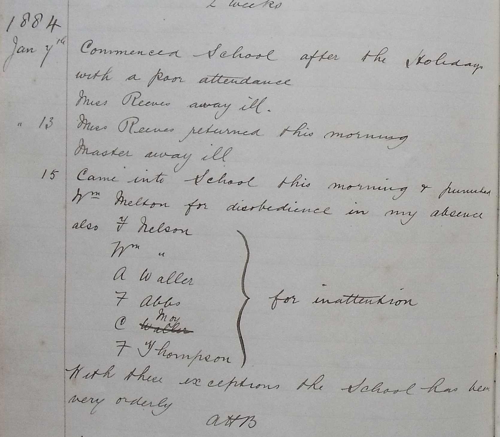 The Log book for this period shows he was (still) a rigorous enforcer of school discipline that sometimes seems to lapse in his absence nevertheless being swiftly put right on his return to duty!