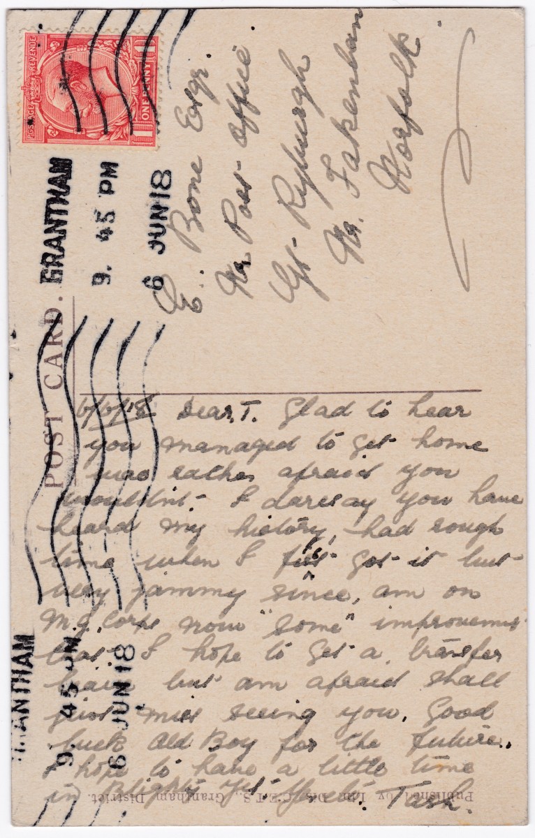 wounded, he sent Ted a P.C. in June 1918 which certainly backs up the report of his